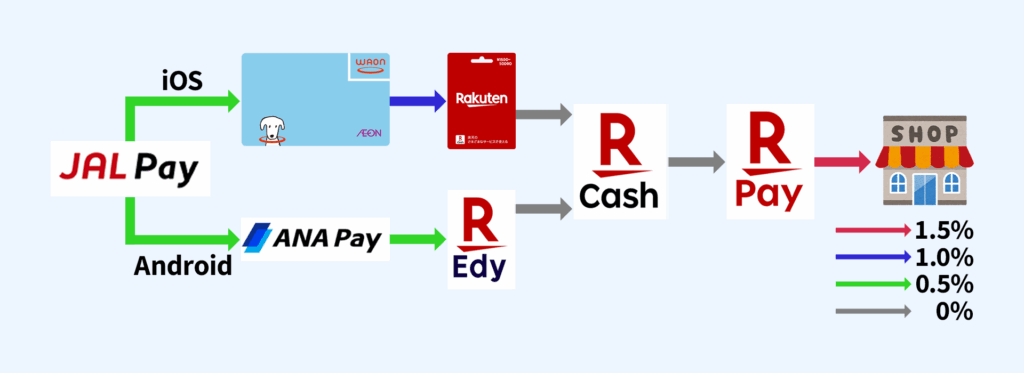 JALPay → ANA Pay → 楽天Edy → 楽天キャッシュ → 楽天ペイ